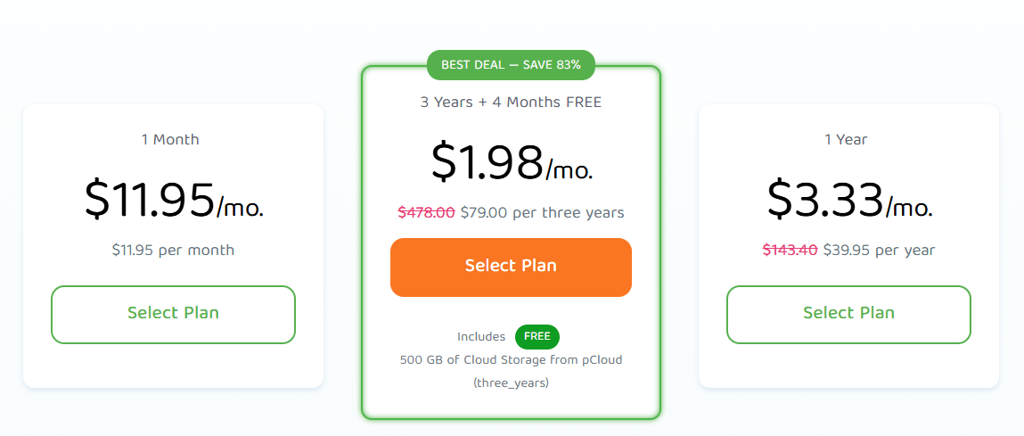 На выбор пользователя доступно 3 тарифа с абсолютно идентичным набором функций, различающихся только периодом действия лицензии. Получить сервис на 1 месяц можно за 11,95 долларов, при оплате 1 год ежемесячная стоимость снижается до 3,33 долларов. Доступен третий вариант – приобретение лицензии на 3 года, при котором ежемесячная цена составит 1,98 долларов, а в подарок покупатель получит дополнительные 4 месяца использования продукта.